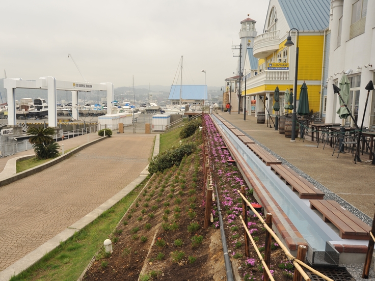 <下の写真はマリンタウンの長い長い足湯です>