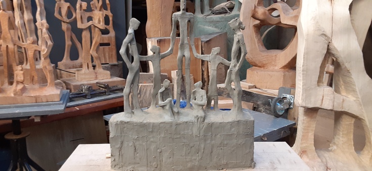 粘土原型➡石膏型取り➡FRP型製作へと進みます。5~6月にはFRP型が完成する予定です。その時点で伊東市長ほかの関係者の内覧会を実施し、その後ブロンズ鋳工所(川口市)にFRP型枠が搬入されブロンズ像の製作が開始されます。12月末までの完成据付を目指しております。