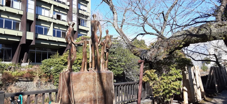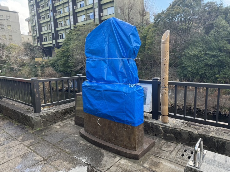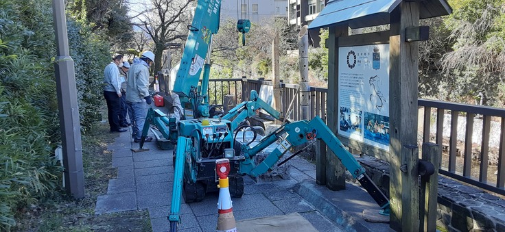 1月24日、その日は朝から冬の日差しが伊東の松川遊歩道に冷厳な中にも温かな慈愛溢れる光となって煌々と降り注ぐ。絶好の据付け日和。