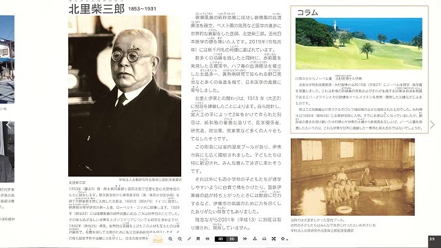 川奈の土からノーベル賞 大村智博士と伊東 北里大学特別栄誉教授・大村智博士は2015年(平成27)にノーベル生理学・医学賞を受賞しました。これは新種の放線菌の発見およびそれが生産する抗寄生虫活生物質であるエバーメクチンとその誘導体イベルメクチンを発見・開発した功績などによるものです。 実はこの放線菌は川奈ホテルのゴルフ場近隣の土から採取されたものでした。大村博士は1965年(昭和40)に北里研究所に入所。すでに北里は亡くなっていましたが、創設者の意志を受け継いだ大村博士が伊東の土壌から新発見をなしとげ、ノーベル賞を受賞したというのは、これも伊東が世界に貢献した一事例と言えるのではないでしょうか。