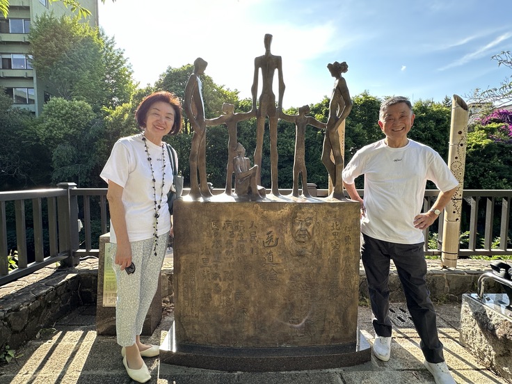 1月29日の除幕式の時に北里家を代表してご招待したのだが、他の行事と重なり参列いただけなかった。今回「シーサーの里帰りプロジェクト」により伊東を訪れる機会ができたので、4ヵ月ほど遅くなったがご夫婦でのご対面がかなった。きっと柴三郎も喜んでいることだろう。