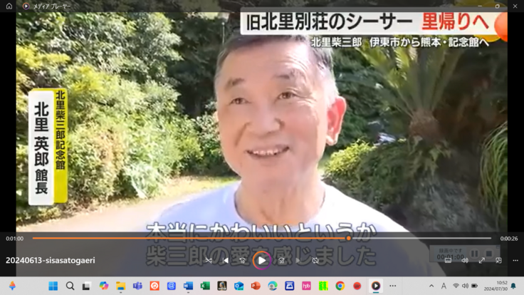 同顕彰委が建立した北里博士の顕彰碑も見学し「市民の思いに感動した」と述べた。顕彰碑の除幕式を開いたのが北里博士の生誕日だったため、同記念館でも行事があり、出席できなかったという。【伊豆新聞2024/6/13記事】