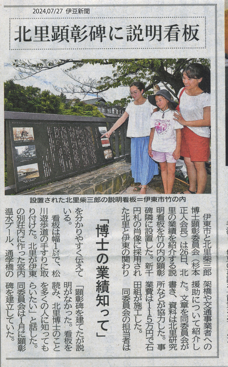 思えば顕彰委員会が組織されたのは2019年の6月。新千円札に採用の発表から3カ月目の時であった。それから約5年、2024年1月29日には柴三郎161回目の生誕日を期して顕彰碑の除幕式をおこなった。そしてその説明看板の完成である。