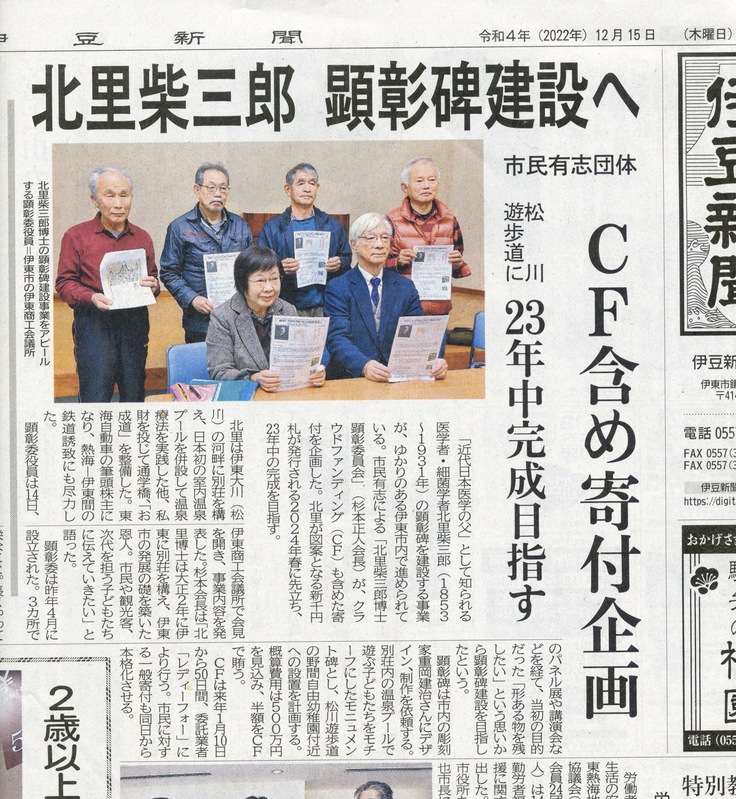 多くの全国からの支援をいただき、柴三郎がこよなく愛した伊東の地に立派な価値ある顕彰碑が完成した。これから伊東の人々や伊東を訪れる多くの観光客にたいして、この顕彰碑が貴重な語り部となって、伊東の大恩人である「北里柴三郎博士」の功績、そして58歳から78歳まで伊東別荘で過ごした20年間の柴三郎の人となりやいろんなエピソードが語り継がれていくことだろう。