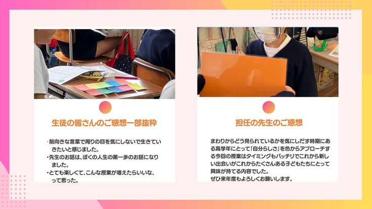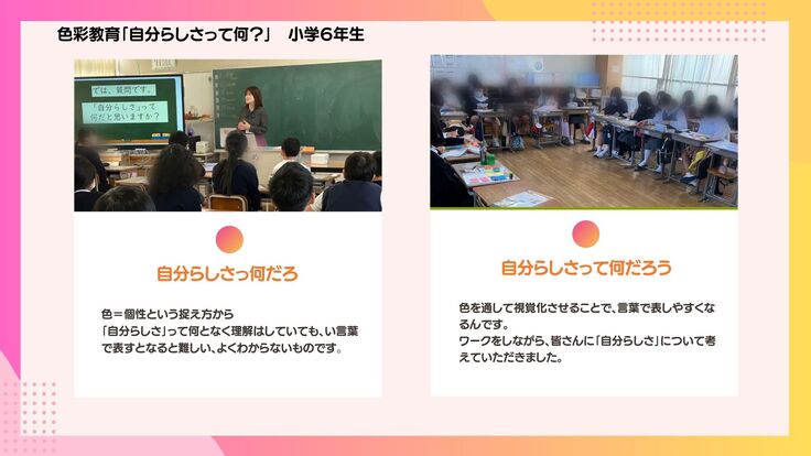 ワークをしながら、子供達に「自分らしさ」について考えて頂きました。