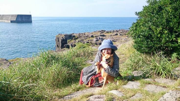 (上の写真は生まれた故郷、鹿児島県いちき串木野市。亡き聴導犬初代犬レオンと共に)