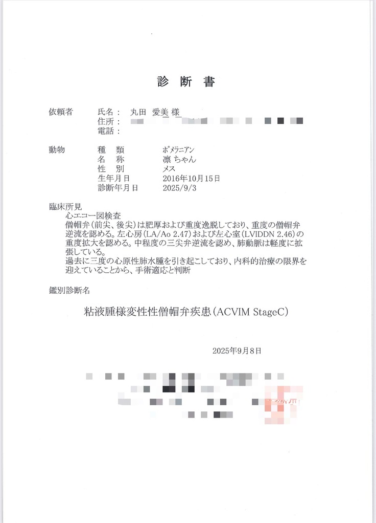 心臓病に関するこれまでの通院・検査・入院・投薬も保険を適用しながらなんとか凛の病状の進行をできる限り抑えてきましたが、薬だけでの治療にも限界が来てしまっています。