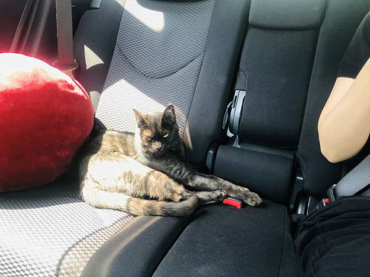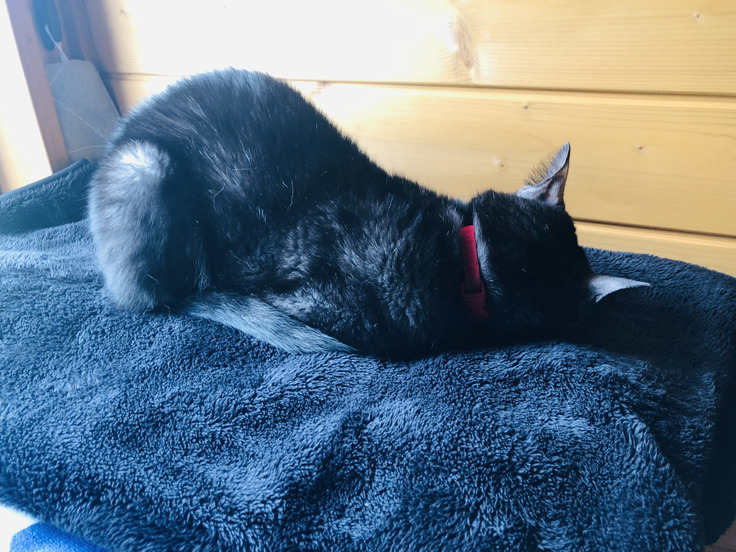 抱っこをして、いつものように撫でていると両目の瞳孔の大きさの違いと2日間の便秘に気が付きました。近所の病院で頂いた目薬も効果がなく、さらに2日後には食欲低下。呼吸が早い。咳をする。ベットの下や押入れの中など暗いところへ行く。変な寝方をする。など普段ではありえないことが多く起こりました。今まで感じたことない胸騒ぎがして病院でレントゲンを撮ると、心臓が映らないないほど大きく腫れたリンパ腫がありました。この病院では抗がん剤を取り扱っていなく、一刻も早く治療をしないと命が危ないと、先生はリスクも承知で自宅から高速道路で1時間かかるガンに詳しい病院を紹介して頂き、すぐに向かいました。
