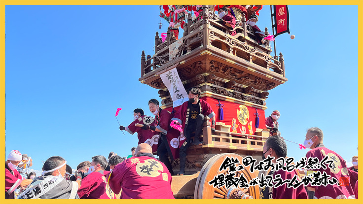 放生津八幡宮前で宮司の祝詞とお祓いを終えた全13基の曳山が「いやさー!いやさー!」の掛け声とともに、町を曳きまわります!
