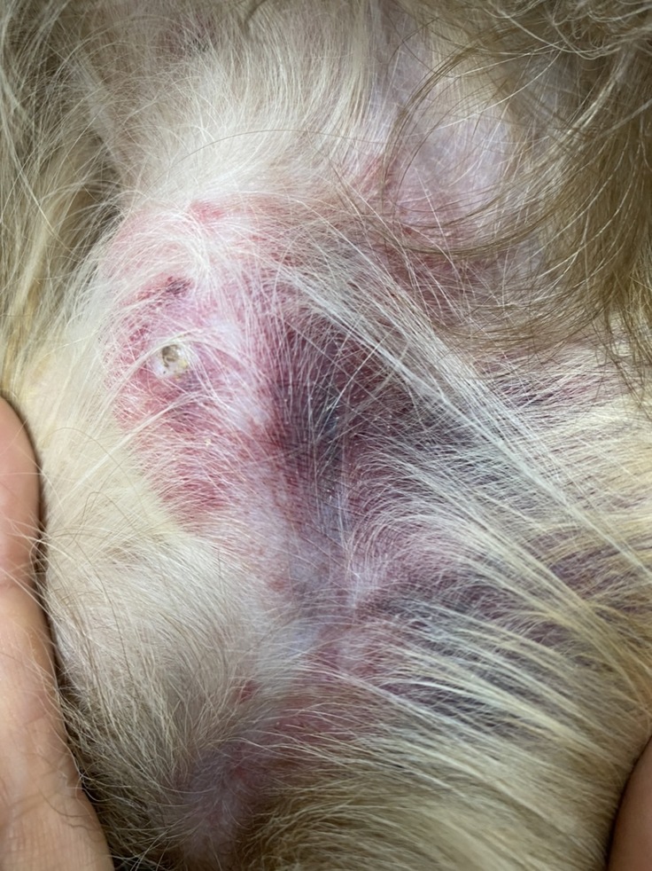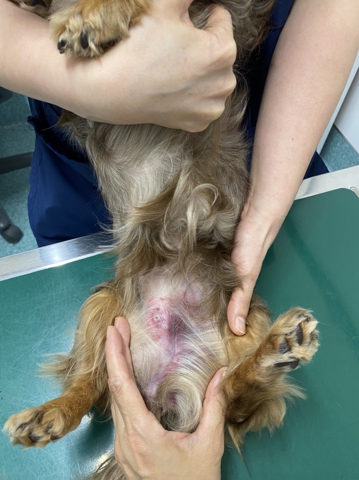 何日か家で薬をあげていたところ、突然の血尿と下腹部の内出血を見つけ