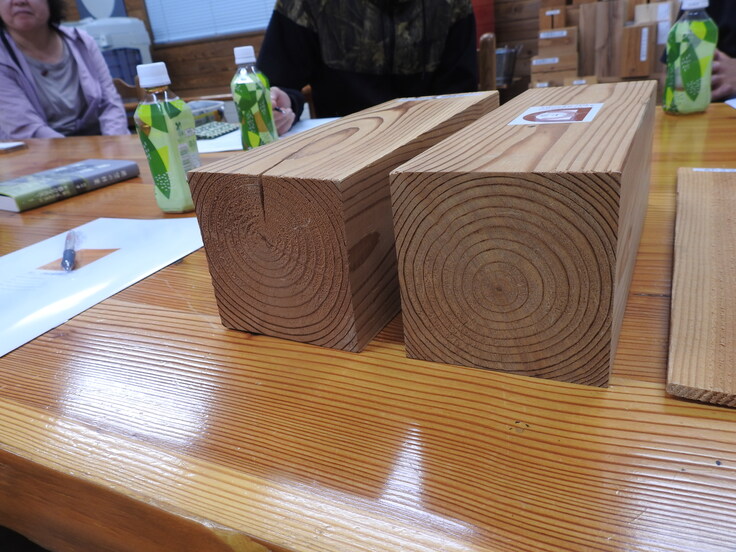 十勝川治水の杜の活動の途中訪れた製材所でカラマツ材の乾燥の話しを伺った。この製材所では、パレットや梱包材の他にも、建築用材を生産しています。このとき問題になるのが木材の乾燥に伴うネジレや割れです。