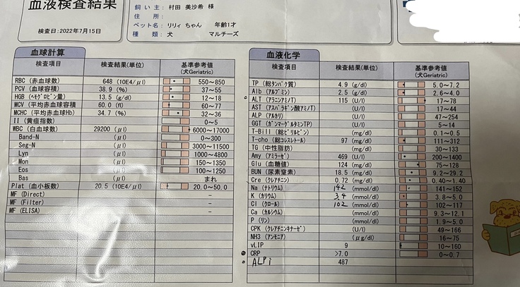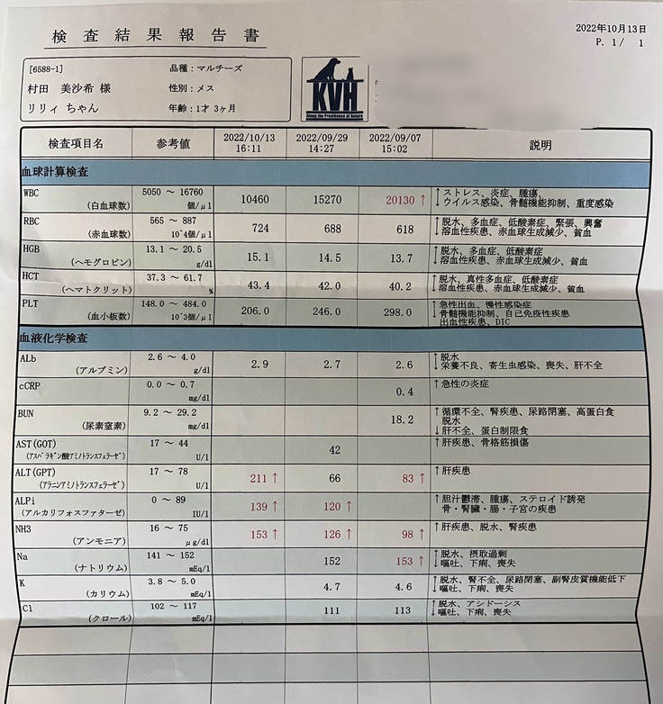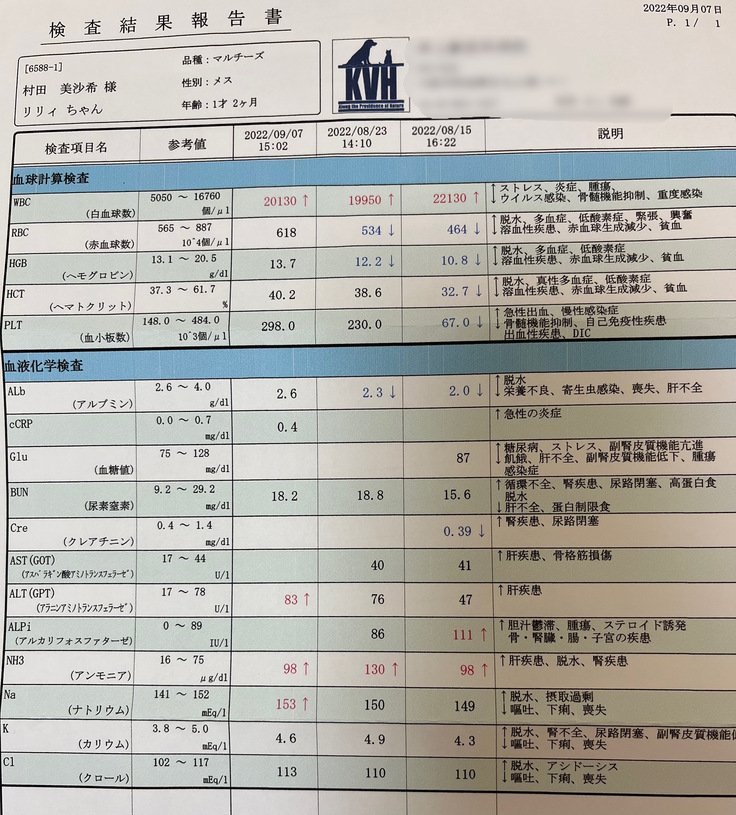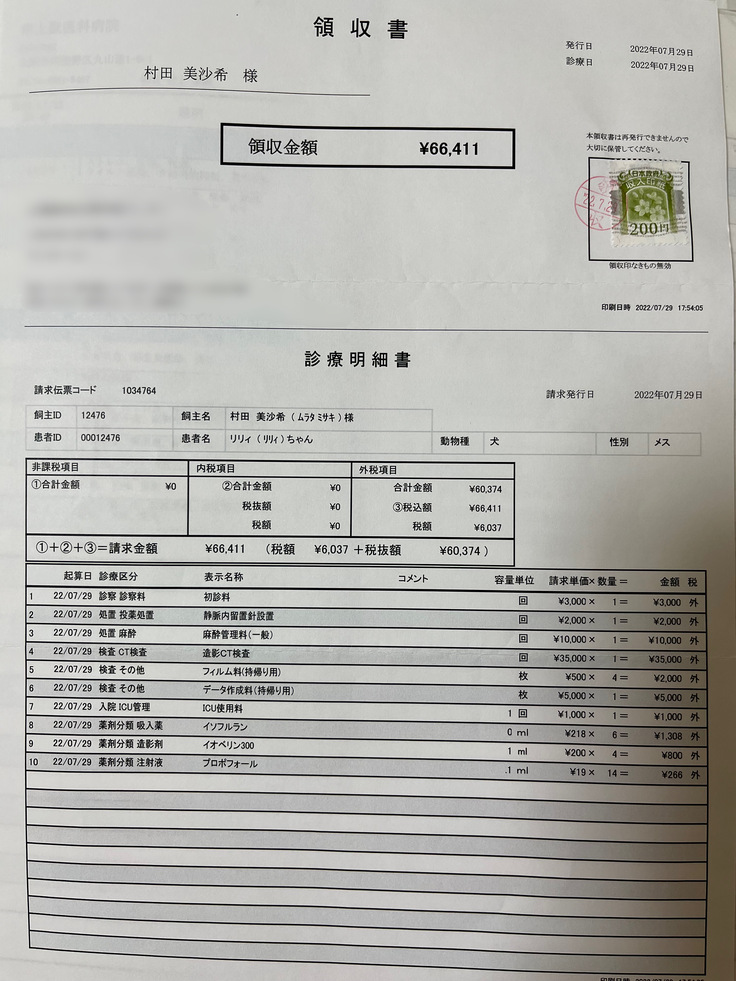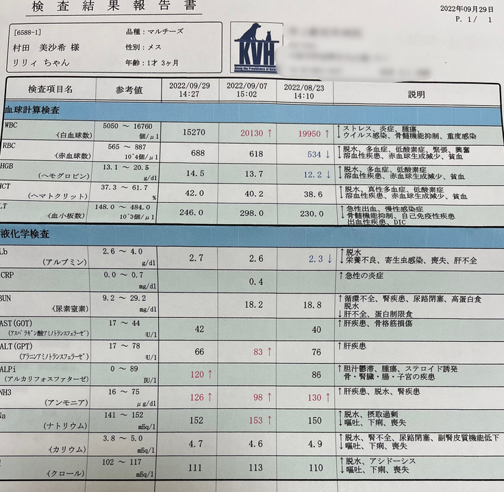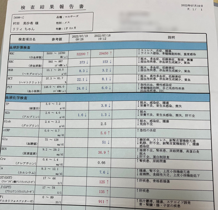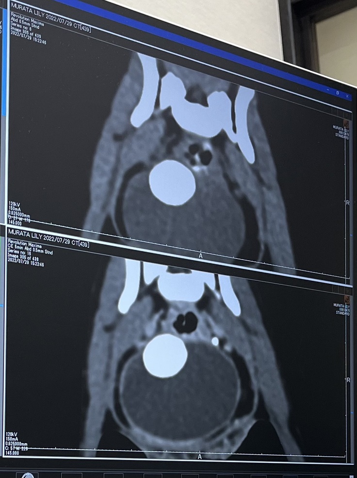 病気の説明を受けて「リリィちゃんももしかしたら門脈シャントがあるかも知れないのでCTがある病院を紹介するので行ってください」と言われ、7月29日の朝に血液検査をしてもらい、麻酔をしてもいける状態だったので、母と一緒にリリィを迎えに行ってCTがある病院に連れて行きました。