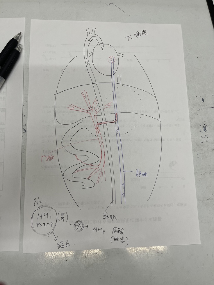 アンモニアを尿酸に変える事が出来ないからそれが結石になってしまうとの事でした...。