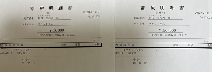 7月14日の18時頃からリリィの様子がおかしく一点を見つめ呼吸が苦しそうだった為、急いで近くの病院に連れていきました。