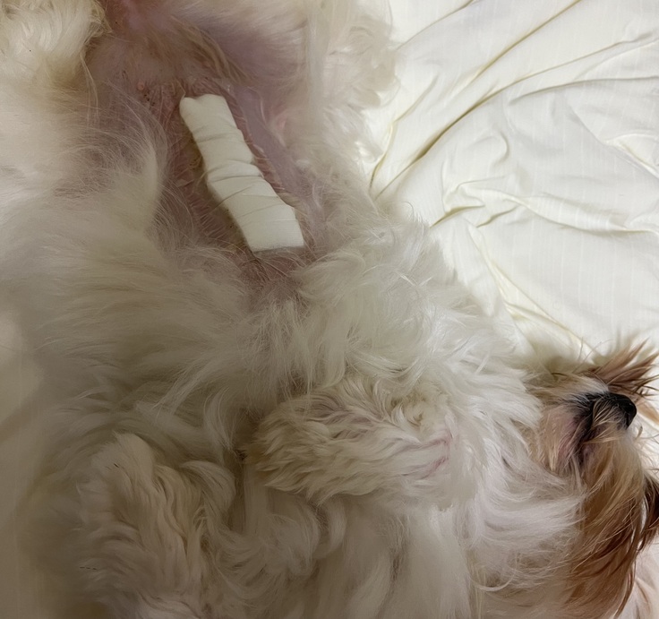8月3日の通院にて抜糸。うっすらと傷があり少し痛々しかったので、抜糸前のリリィを載せます。