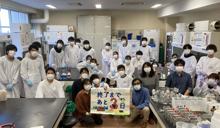 (写真は宮崎大学獣医学科3年生のみなさん。たくさんの応援ありがとう!実習がんばってください!)