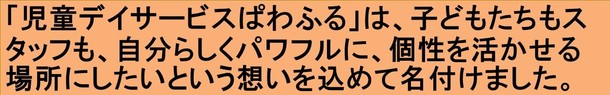 子どもたちの「悪いところ」に注目するのではなく、「良いところ」を、たくさん見つけ、一緒に伸ばしていくことで、子どもたちが「自分らしく」生きやすい環境で、ともに成長できる児童デイサービスを作りたい、その想いから今回の挑戦をスタートしました。