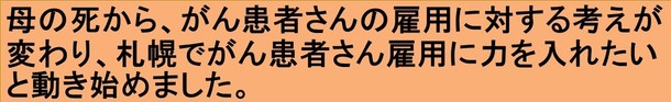 更に、北海道でのがん患者さんの雇用率が低い事も知りました。母が美容師という仕事を続けることが出来なく「