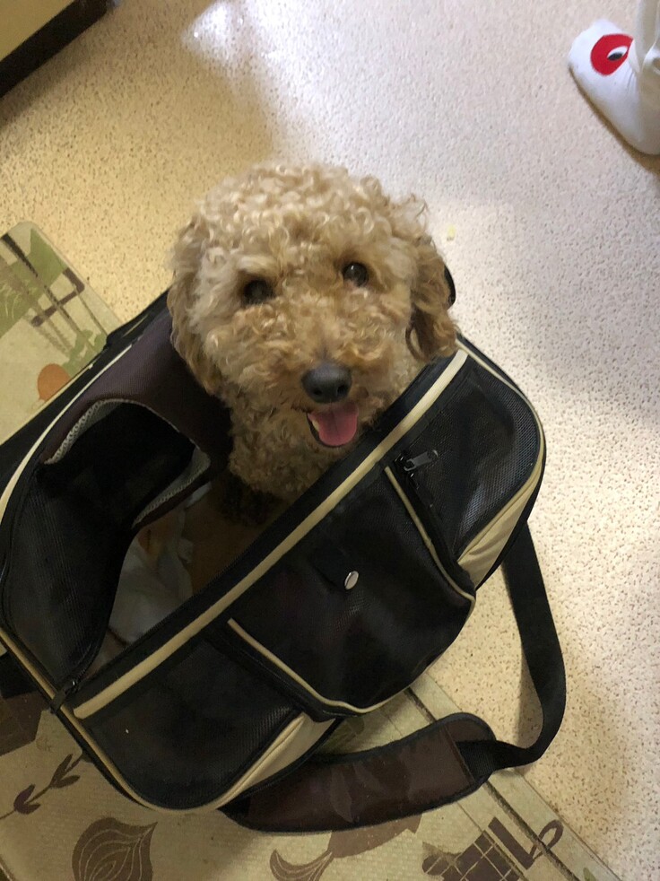 ◆現在1か月間の絶対安静期間は、中で歩かないようにキャリーケースに入っていますが、食欲はあります。歩くのは絶対だめですが、抱っこはできるので、ボランティアに甘えています。かわいいクルにボランティアはメロメロです。キャリーケースのチャックを開けると外へ出たがります。医師によると、もう痛みはないだろうとのこと。安心しました。