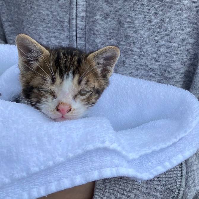 5月9日・世話にきたボランティアが真っ先にクルのケージを見ると、ペットシーツにおしっこをしていて、不安そうにボランティアを見上げていました。おしっこをした後、寝床に移れなかったようなので、別のボランティアがふあふあの敷物を敷いてくれました。朝のご飯は完食、痛いでしょうに、足を浮かして立っていたりもしていました。クルはぬいぐるみみたいにかわいい子です。