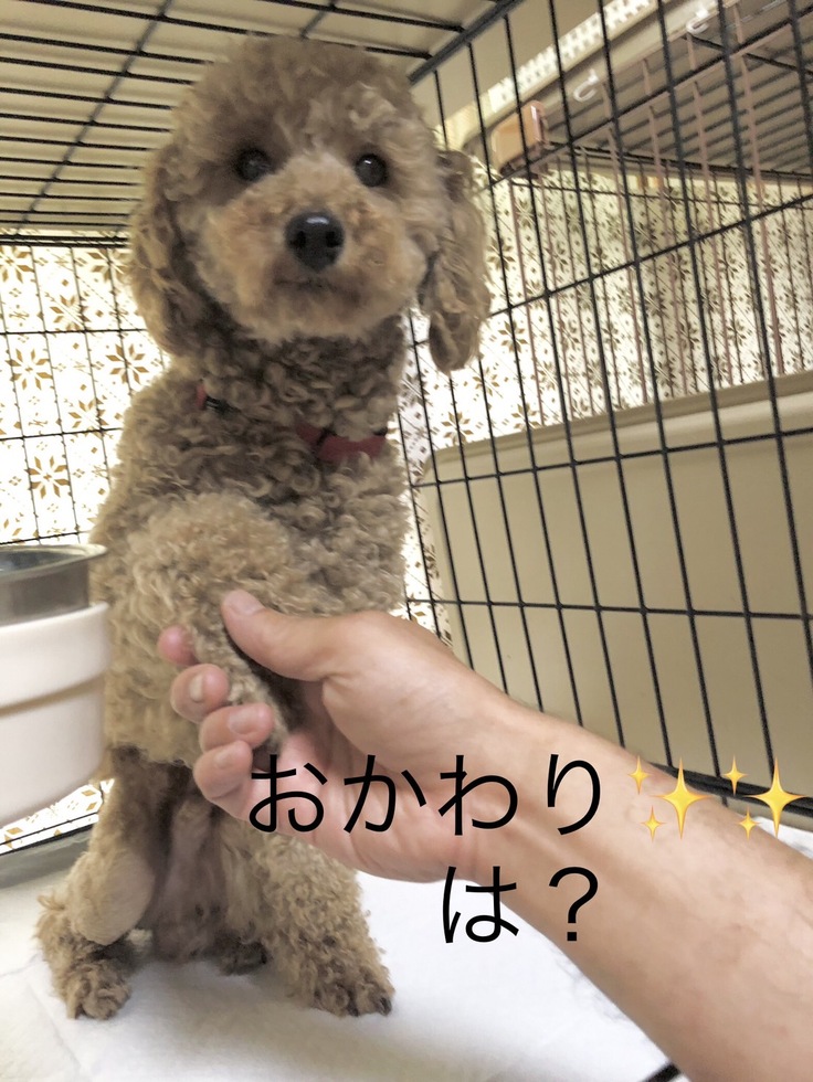 お手、おかわり、お座り全てできるお利口さんです。自慢げなお顔見てあげてください☆