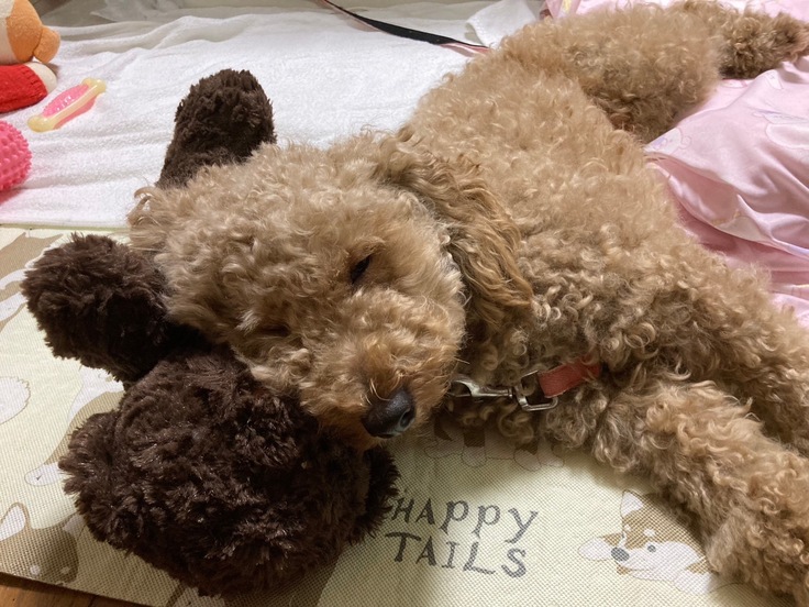 「ワンと言う時もあり、イタズラもするようになってきています。走ったらダメと言うと止まります。オモチャを持って来ては遊んで欲しそうに見上げます。預かった次の日にシャンプーして、昨日ブラッシングとカット少ししてくださいました。餌はカリカリに野菜と鶏肉を少し混ぜたら一瞬でなくなります。」