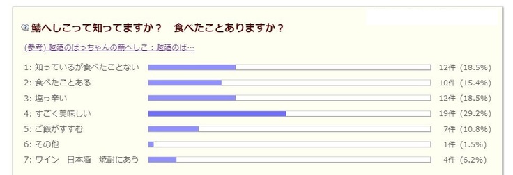 福井県の報道やTVの影響でへしこの知名度は少し上がってはいますがまだまだうまく世に中に伝わっていないことが解りました。