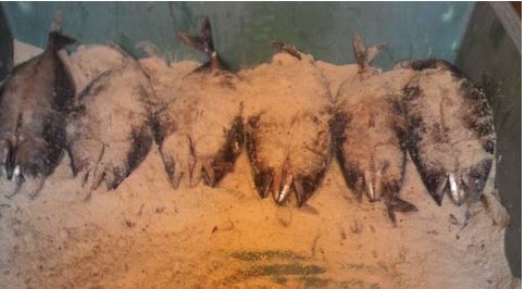 仕込み鯖の種類 大きさにまず問題があることが解りました。上の写真でもわかるように一番手前が一番小さな鯖のサイズ、奥に行けば行くほど大きなサイズになっているがわかると思います。食べ比べると一番小さな鯖が塩っぽく感じ、ぱさぱさしています。大きくなるとそれだけ脂がのると言う事です。