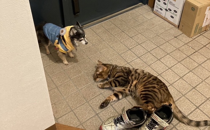 ↑一緒にすんでいる、ねこちゃん(4.5kg)と比べてもこんなに小さいです