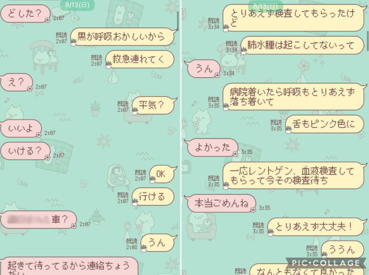 くろは今年の2023年6月3日11時頃、急に息が荒くなり慌てて近くの病院に駆け込みました。