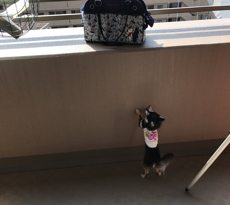 ベランダに置いてあるバッグのところでぴょんぴょん!と跳ねたり……