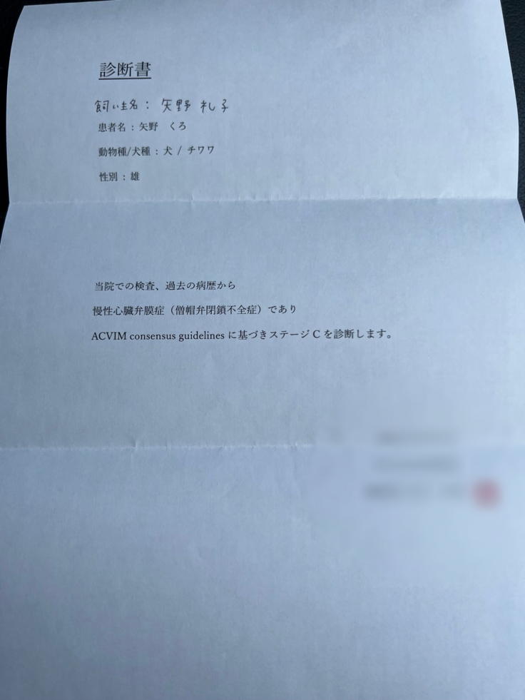私たちは深夜救急のお医者さんに僧帽弁閉鎖不全症のワンちゃんの予後について、昨夜の内に聞いていました。