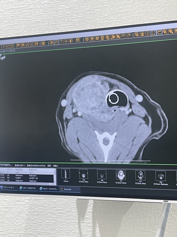 CTの結果、全身に転移が見つかり、手術不可能となりました。