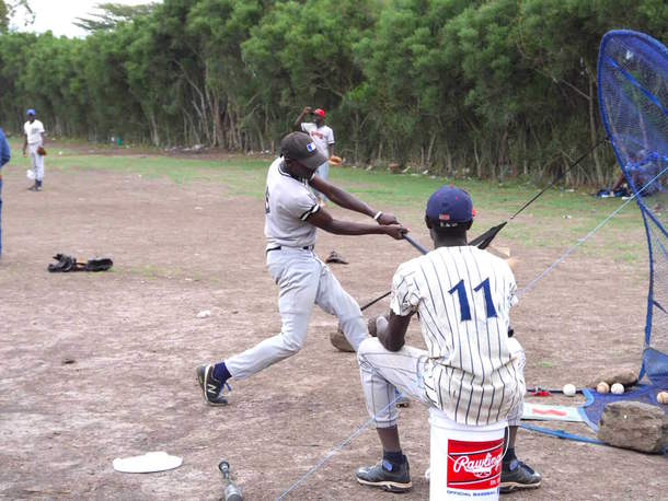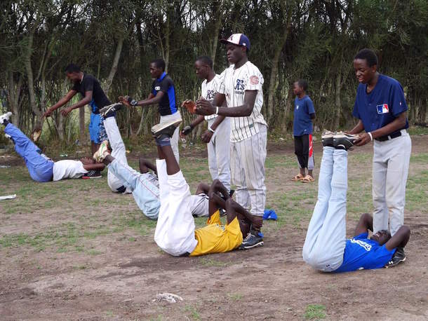 デコボコ荒地で練習するケニアの野球選手に初めてグラウンドを!
