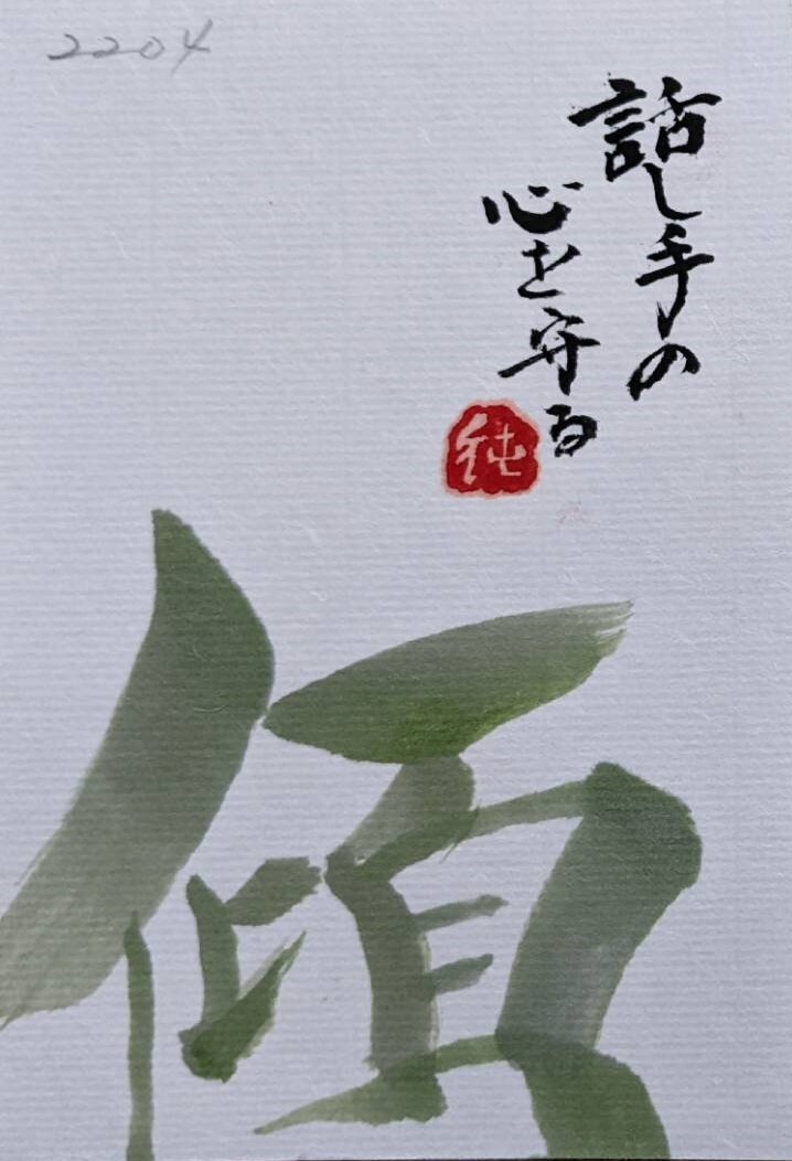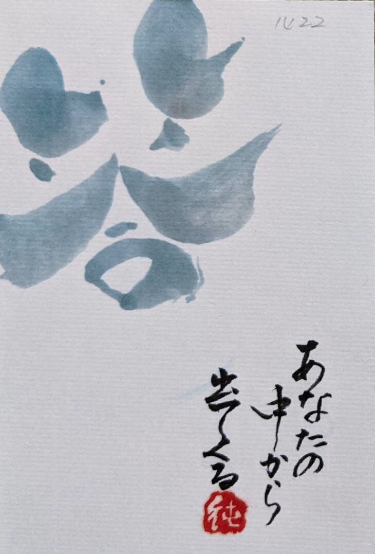 「文字と共に」をFacebookに投稿し始めると「いいね」の数に一喜一憂する自己顕示欲から「良いものだけをアップしよう」と囚われた時期もありました。 しかし捨てられる作品も一枚一枚一生懸命書いており二度と同じものは書けないと自問自答する中で、すべては見てくださった方に委ねよう。その方々がどう受け取ってくださるかが大切なのだということに気づきました。どの葉書も命が宿り羽ばたいて行くように思われ、私心を手放すことができました。