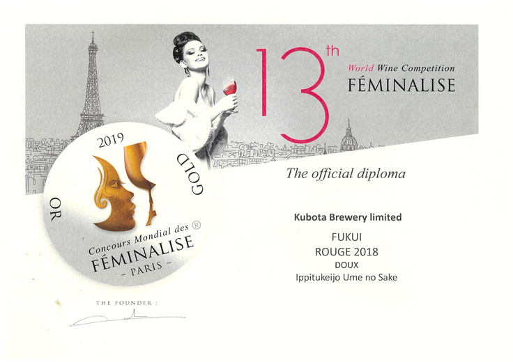2019年フランスフェミナリーズ世界ワインコンクールリキュール部門において