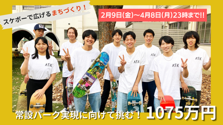 私たちASKは、本日2月9日6時から新プロジェクト「尼崎のまちにスケボーの響き!常設のスケボーパークを設置したい!」に挑戦しています!!!