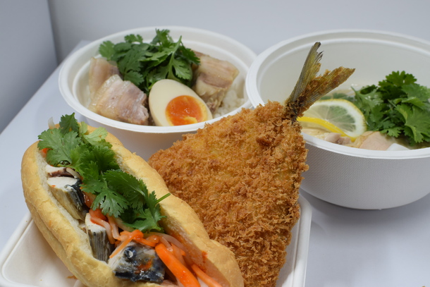 アジフライ、フォー、バインミー、角煮丼、それぞれ美味しく仕上がっています。