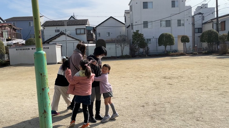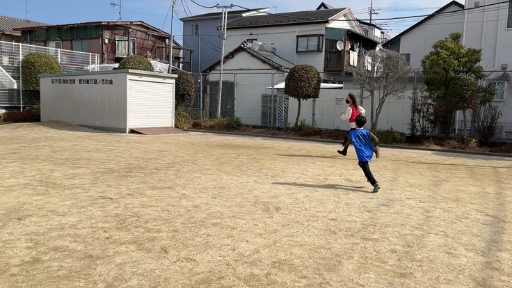 みんなでドロケイをします!お母さん達も一緒にやりました!