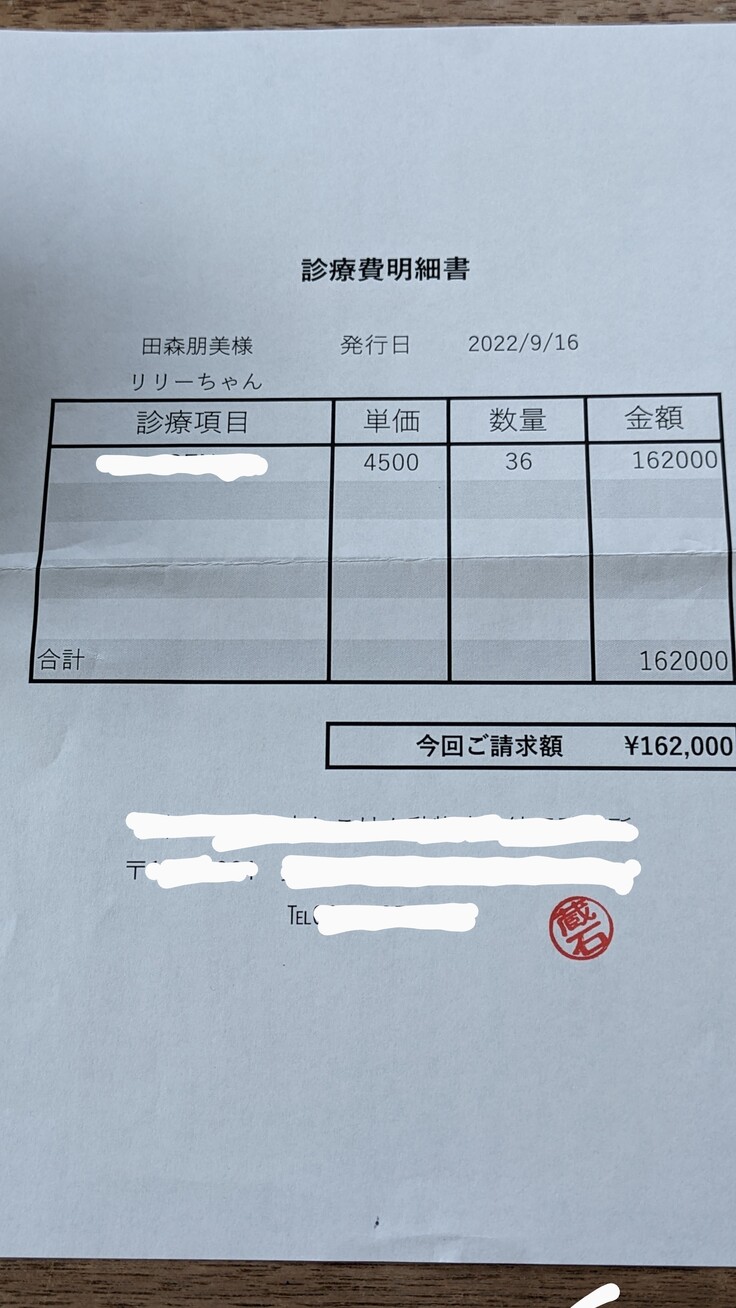 本来、お金は全額出して助けてあげることが飼い主として、家族としての責任であり、当然のことだと思います。