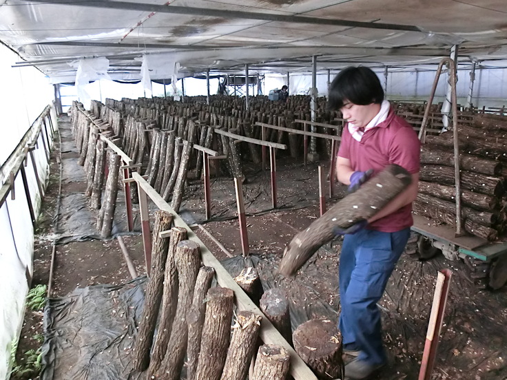 原木栽培のしいたけは、日本では古くからある栽培方法なのですが、重労働でかつ手間がかかることなどから敬遠されつつあり、最近ではより効率的な栽培方法である菌床栽培が増えつつあります。(菌床栽培とは「原木」ではなく、原木を粉砕した「おがくず」にしいたけ菌を植え付ける栽培方法です。)