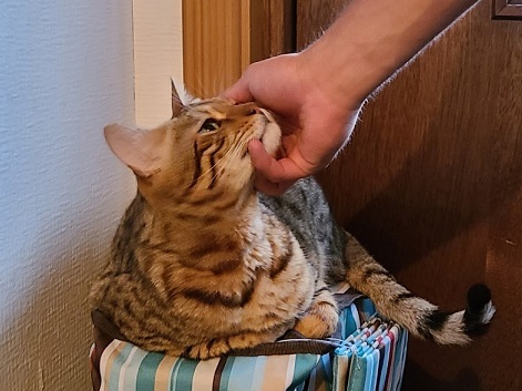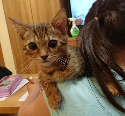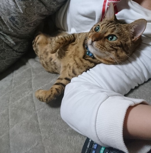 甘えた声で「にゃ~」と鳴いたりする。優しい子。