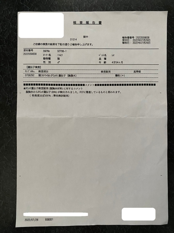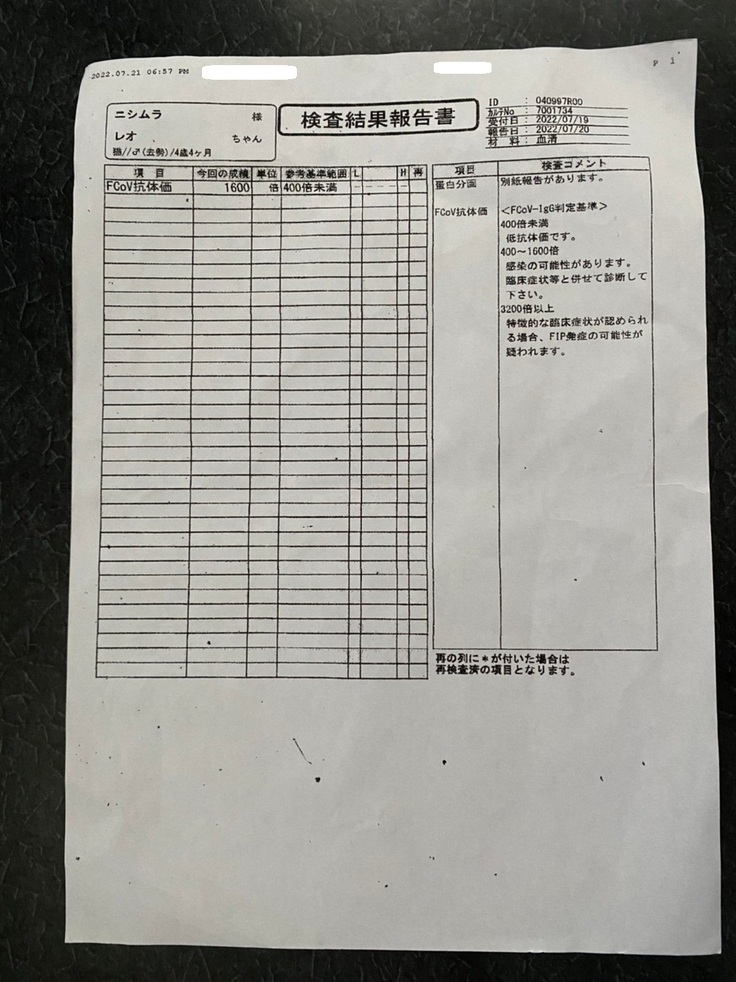 2022年7月中旬に、レオ君がFIPと診断されました。