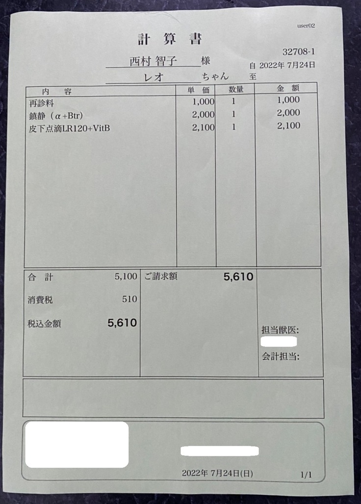 (元気になって水を摂取するようになれば、皮下点滴の費用は減らせる見込み)