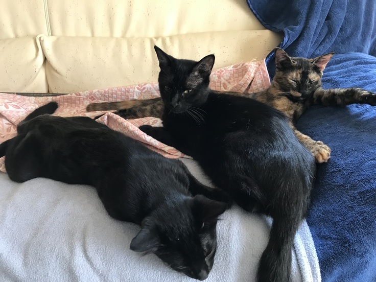 仔猫たちも大きくなって自由に走り回り、子育てからすこし解放されて自由になったクロちゃんは、ゆったり寝たり仔猫とじゃれ合ったり…まだオッパイを飲ませたりしています。