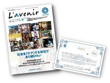 継続寄付をお申込いただくと「スマイルクラブ(毎月の寄付)会員」として登録されます。会員の皆さまには、世界の医療団 日本の活動をより詳しくレポートした会報誌「L’avenir (ラブニール)」を年2回お届けします。また、長期間継続支援いただいた会員の皆さまに感謝状をお送りしています。