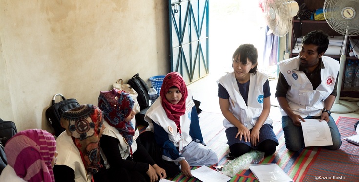 ◆ロヒンギャボランティアとの協働を通じ、難民自身がコミュニティにおいて、疾病の予防や健康の保持・増進についての認識を高め、共助を進める仕組みを作っています