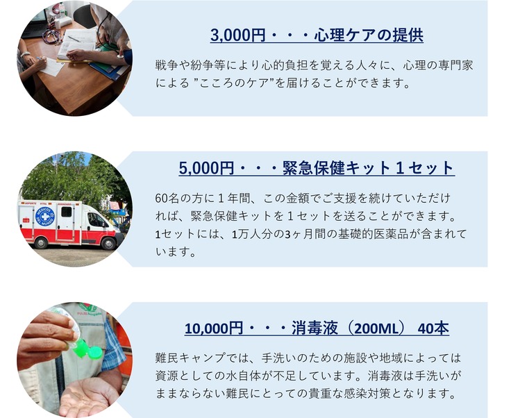 本プロジェクトは、税制上のメリット(控除)があります。ご支援金は、難民支援をはじめとした世界の医療団が行う医療支援活動全般への寄附金として受領いたします。