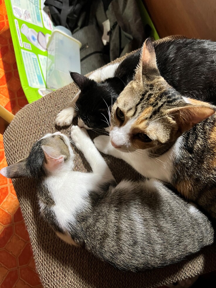 台風14号過ぎて…カルアお母さん、子猫の面倒を見る