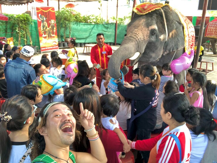 現地のタイの人々はもちろん、たくさんの観光客たちが、健康で元気なゾウ達に会えて、